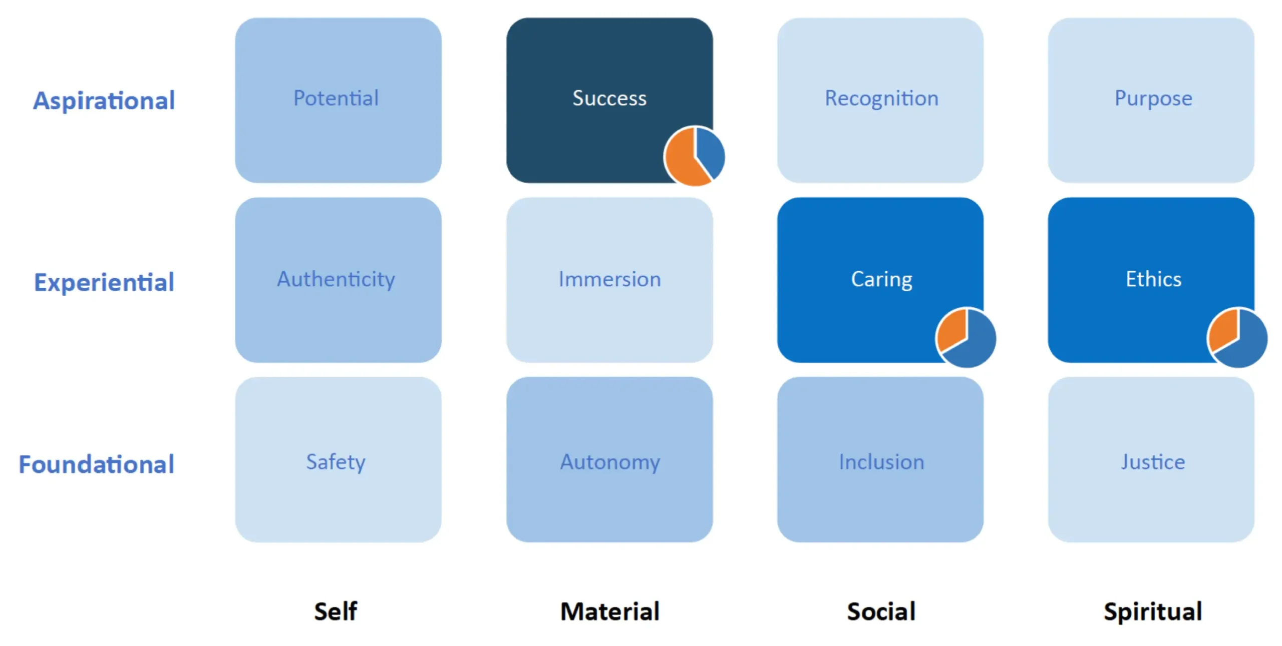 Lois explained that she was comfortable with who she is (shades of light blue, indicating “settled” in the Self domain) and what she can do (shades of light blue indicating “settled” in Autonomy and Immersion).